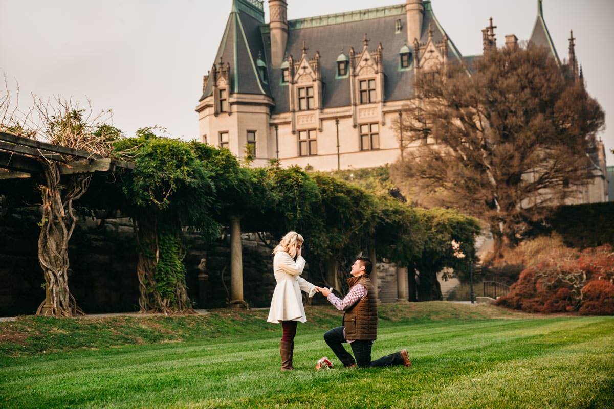 Biltmore Estate proposal sessions have become a staple for me as I have captured over 100 proposals and have had a 100% success rate. The Biltmore Estate is a super romantic place that anyone can appreciate. The nice thing about getting your proposal professionally photographed at Biltmore Estate is that there are so many gorgeous locations to choose from.